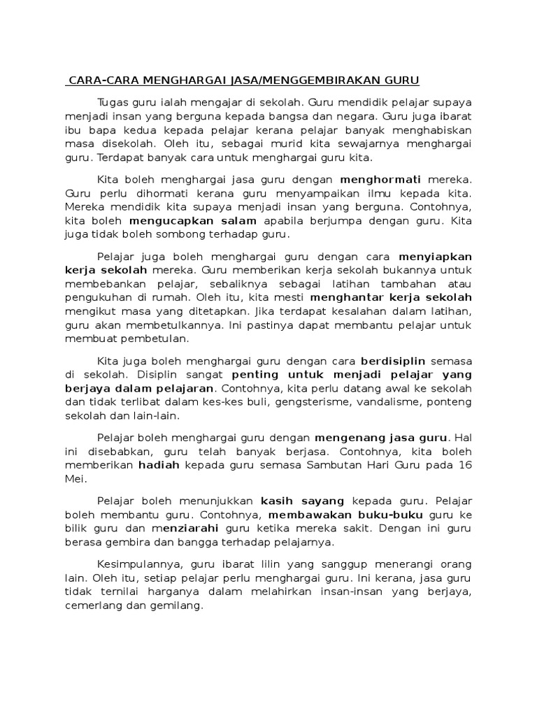 Karangan Cara Cara Menghargai Jasa Guru Oxsgant